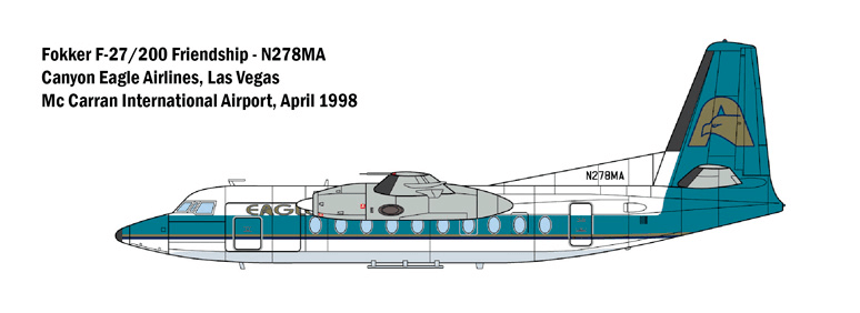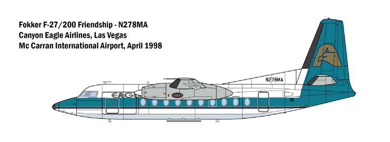 Here’s another completion for work, Italeri’s rerelease of the ESCI 1:72 Fokker F-27 Friendship, in the beautiful colours and markings of Canyon Eagle Airlines.