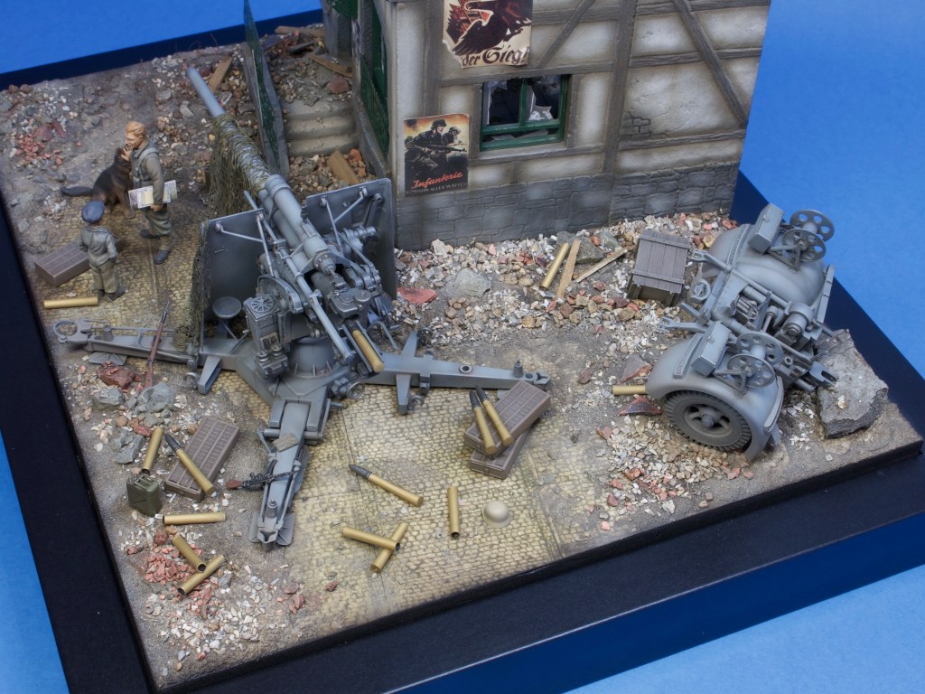 Francois Verlinden’s famous scene built around the Tamiya Flak 36 and the MDA Rathaus, is my all-time favourite diorama. So when I began my series of Verlinden-Inspired ‘Legacy Builds’ at the start of lockdown, I knew that I would have to build a cover version of this diorama as part of that collection. Here is that reimagined scene…