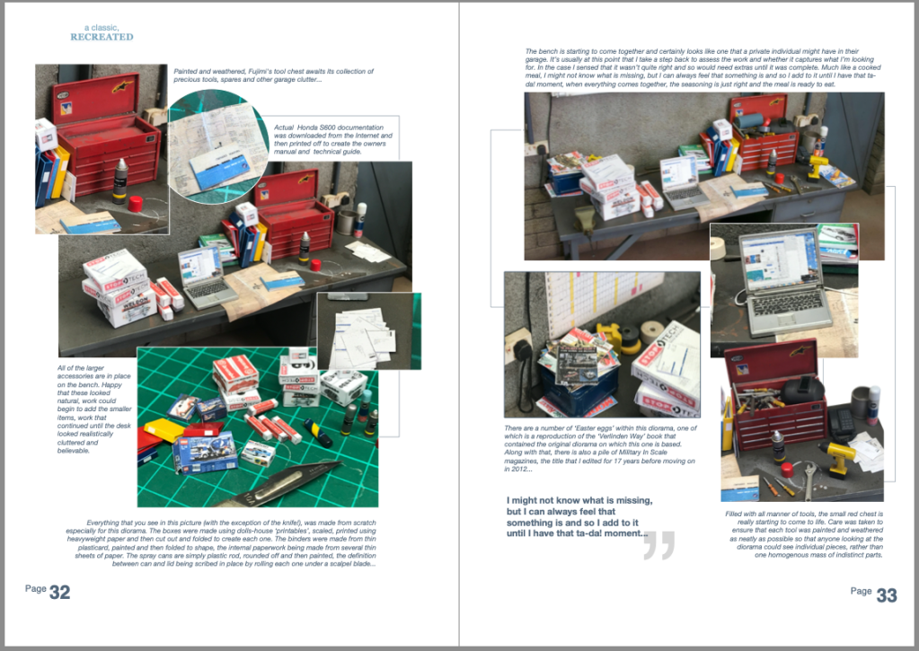 Here are some of the pages from my new book on ‘The Garage’ diorama that you hopefully enjoyed seeing earlier this summer. I’ll be completing this one this week, so will hopefully be able to judge interest and draw up a list of those that want a copy next weekend. As with everything that I do, this will be strictly ‘limited edition’, so if you are invested, please get in touch!