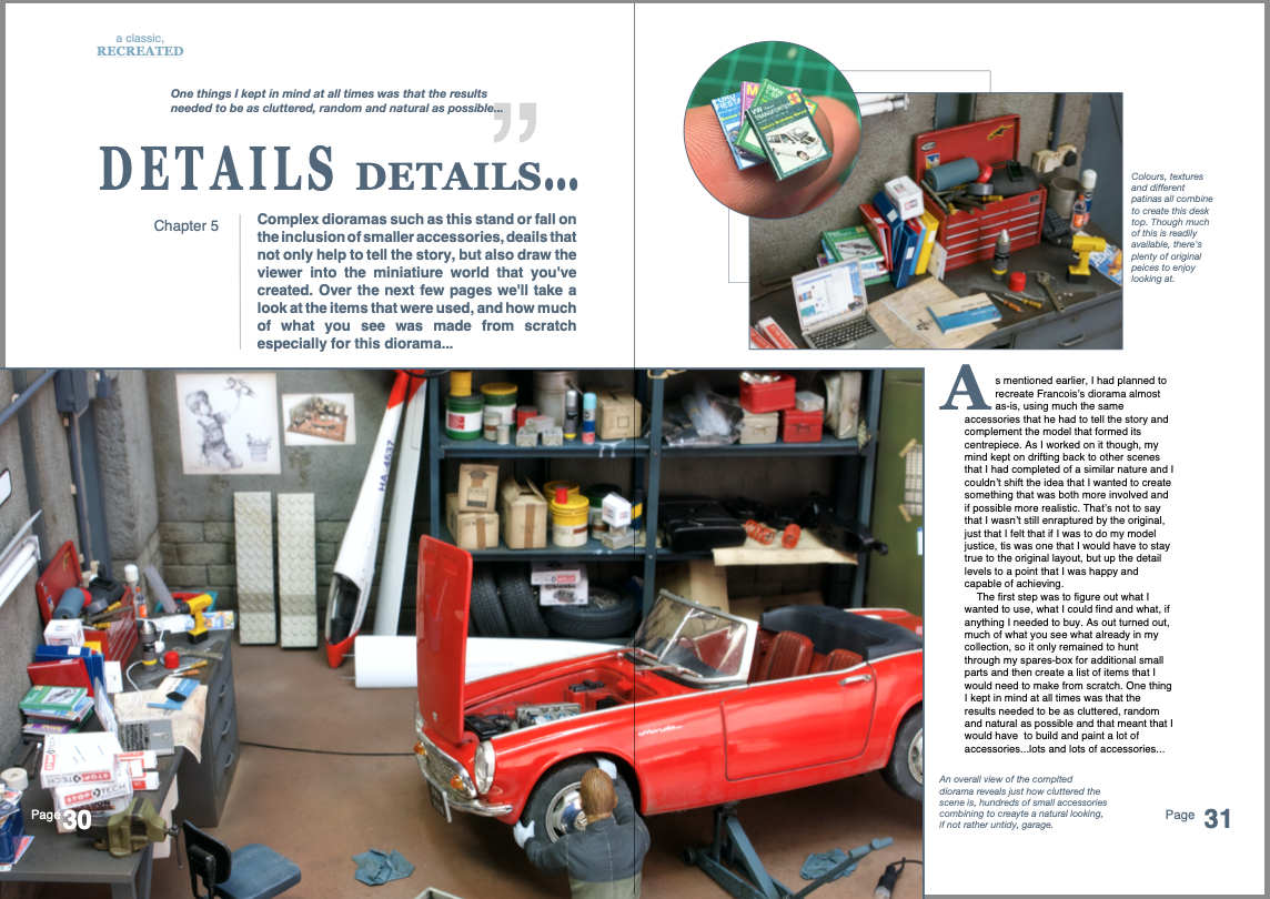 Here are some of the pages from my new book on ‘The Garage’ diorama that you hopefully enjoyed seeing earlier this summer. I’ll be completing this one this week, so will hopefully be able to judge interest and draw up a list of those that want a copy next weekend. As with everything that I do, this will be strictly ‘limited edition’, so if you are invested, please get in touch!
