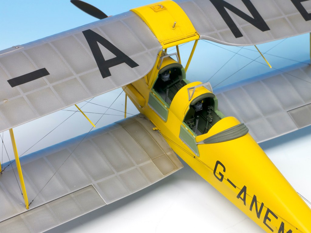 This was a bit of a labour of love, so I tried to create as detailed a model as I could against the deadline that was set for it. The details and colours were added and applied using a full set of photographs that were available of the actual aircraft I chose to replicate (see link below for further details). The cockpit was scratchbuilt to recreate a more accurate, modern layout, the engine was detailed and then where possible, the exterior was reworked with tiny details to improve what was supplied. As a change of pace, I then replicated G-ANEM, a Tiger Moth that can be seen in the skies over the UK, the markings all being applied thanks to custom masks cut by Jonathan Mock. Thanks mate!
