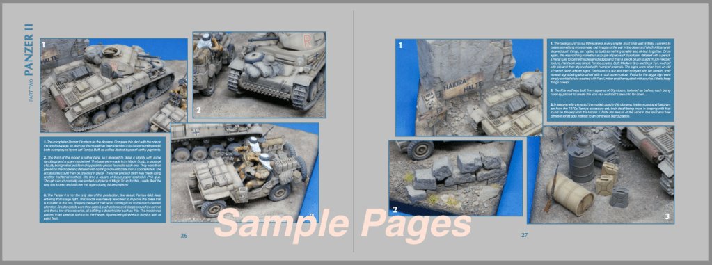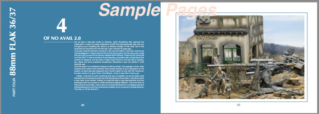Each chapter offers plenty of construction and painting tips, with easy to follow ideas that will help you to build the models and then perhaps, similar dioramas for your collection. Discussions are had regarding planning, detailing, painting, how to sculpt your own buildings and the use of these older models and their companion sets of figures and accessories. But more than that, the images, musings and techniques offered, will also be of use if you just want some ideas for other models of similar design and vintage. Or maybe, you just want to look at the pictures of the completed mnodels – it’s all there!