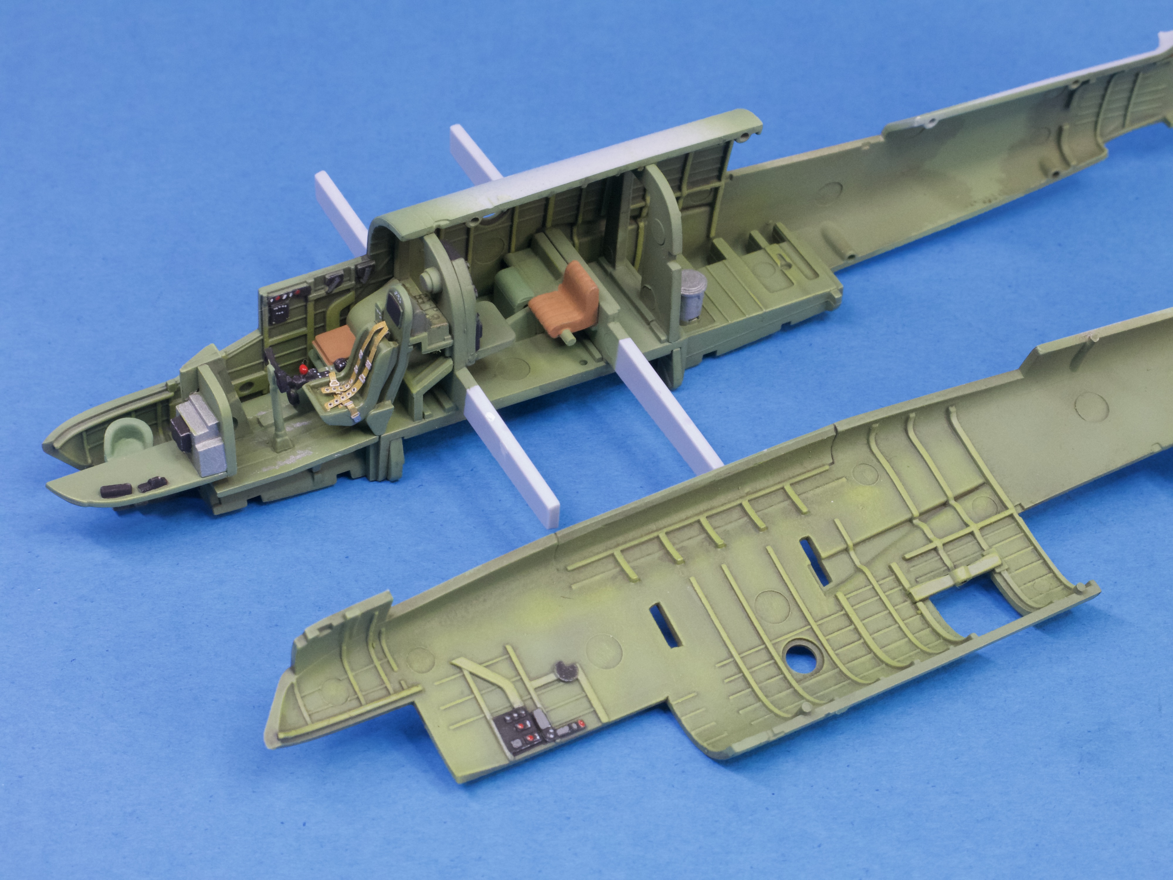 Drybrushing, that most contentious of steps these days (matched only by the use of clear coats prior to decalling…) really helps pop internal details and though far from obvious within the fuselage of my model, this step certainly helped rather than hindered, progress. Details as with previous models built recently, were picked out with Humbrol enamels.