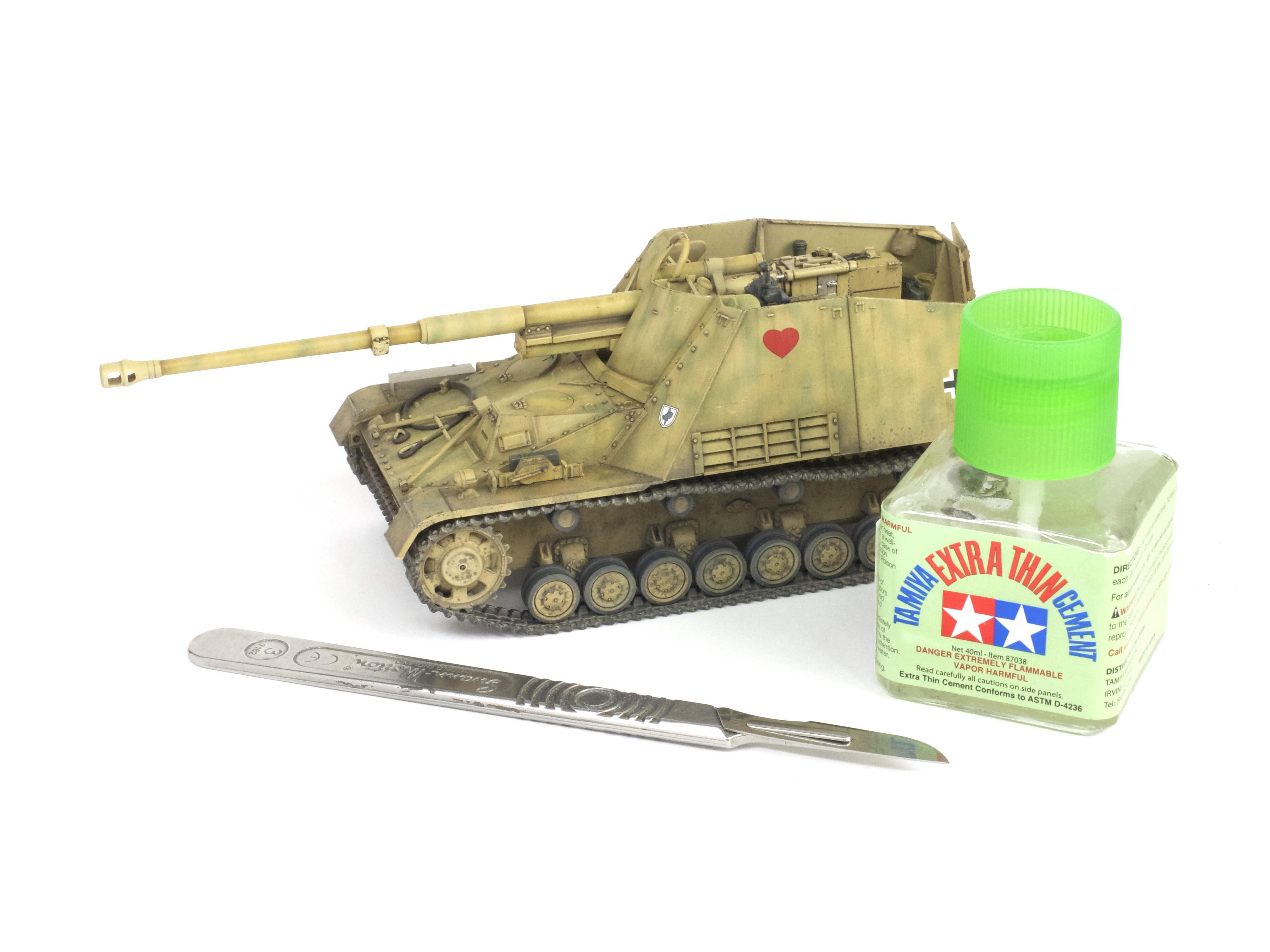 Here is my rendition of the soon to be released, 1/48 Nashorn. Though not exactly hot on the heels of the 1/35 kit that Tamiya released several years ago, this new kit is the latest addition to their increasingly impressive ‘Quarter Scale’ range. Offering high levels of detail and assembly that is as easy, as it is well thought out. This new kit is the perfect platform for a simple weekend OOB project, or a more involved model that you can add detail to, or perhaps even, build a diorama around!