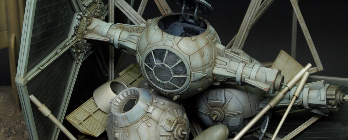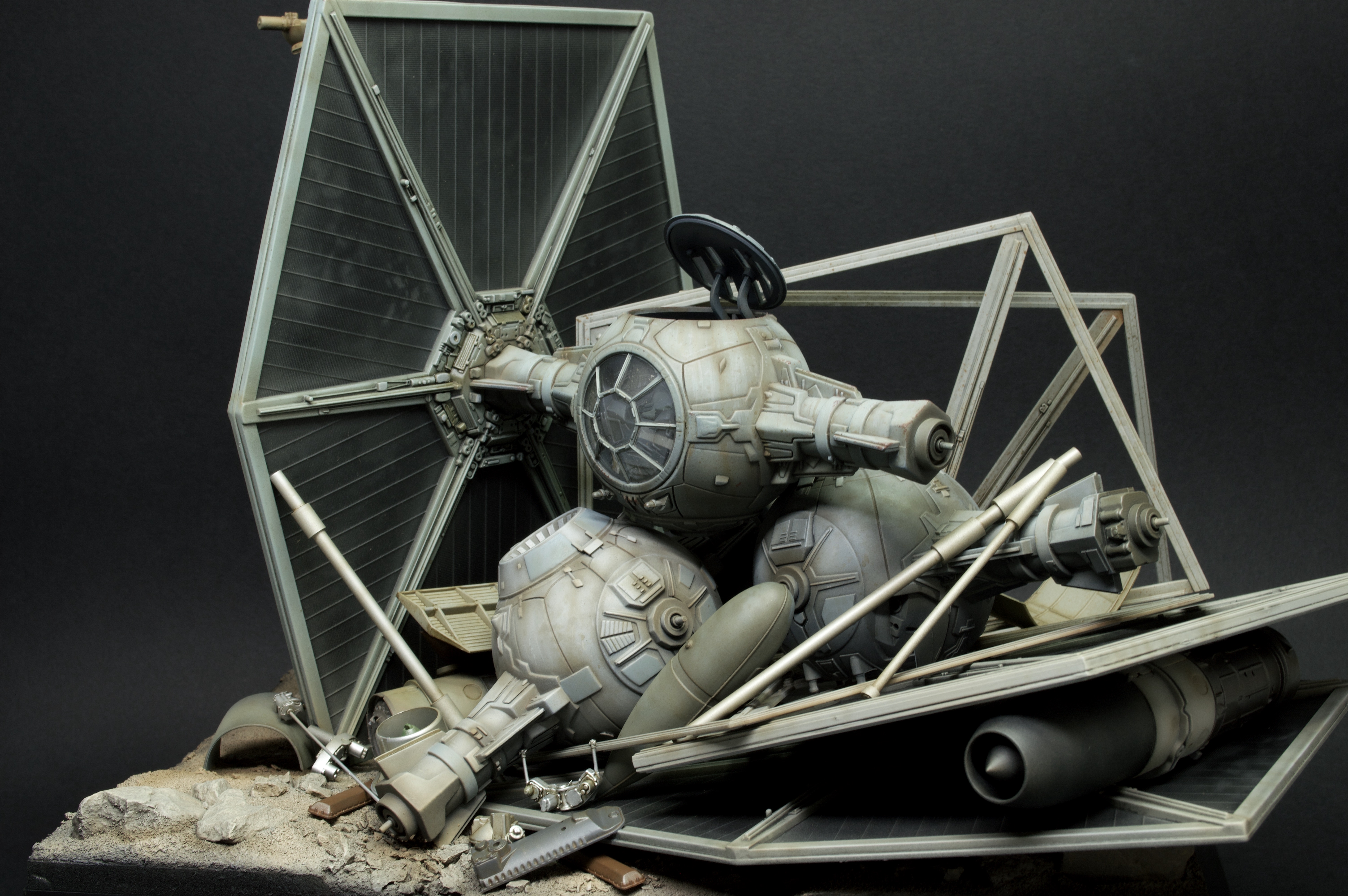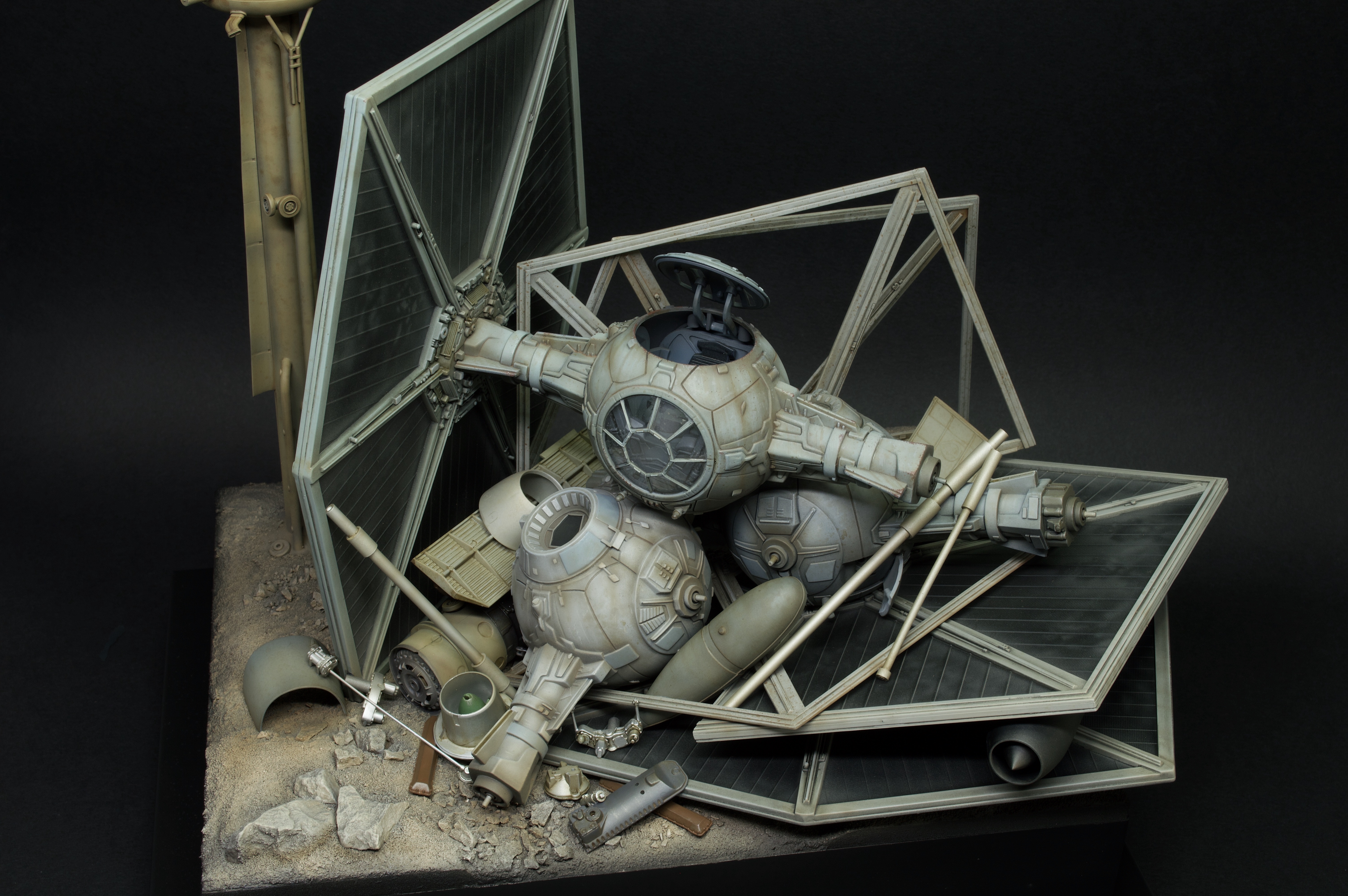 I had a few days at the end of last week in-between work commissions, so thought I’d have a go at something a little different – and here’s the result: my new diorama entitled “TIEs Died”.