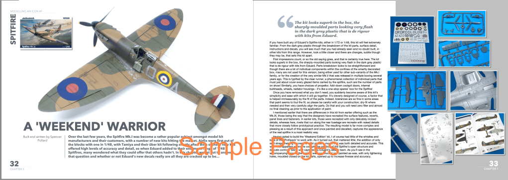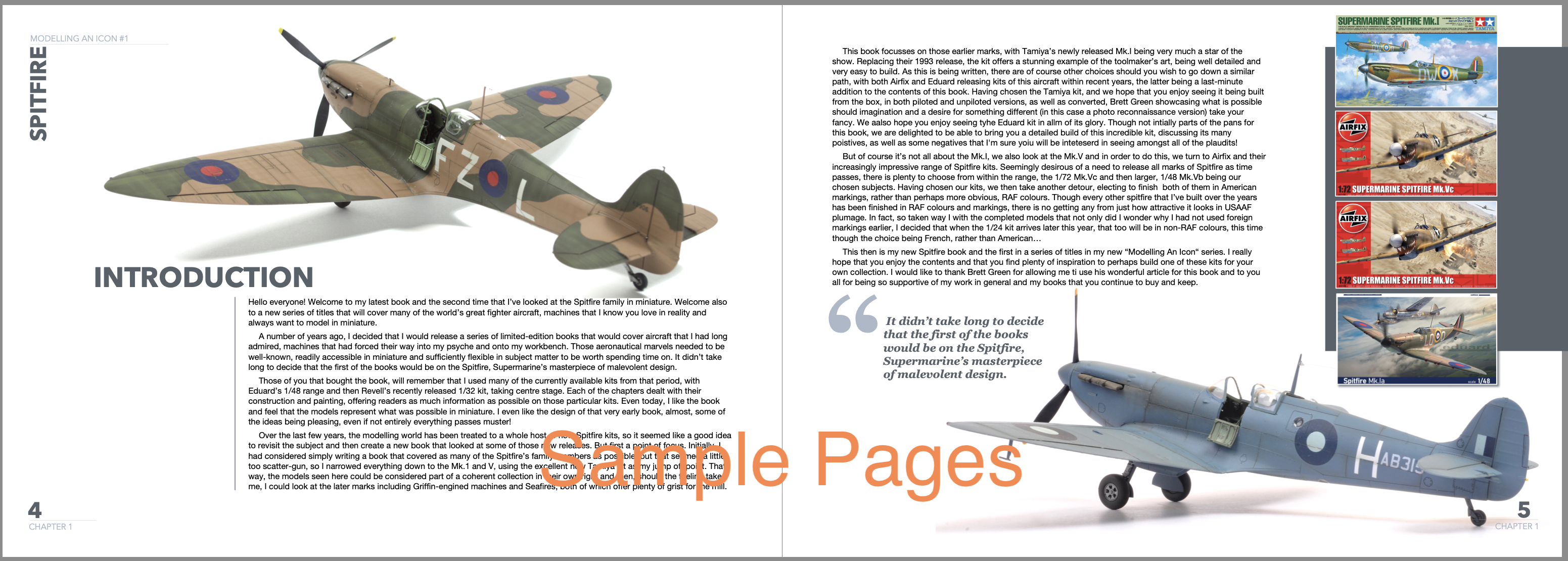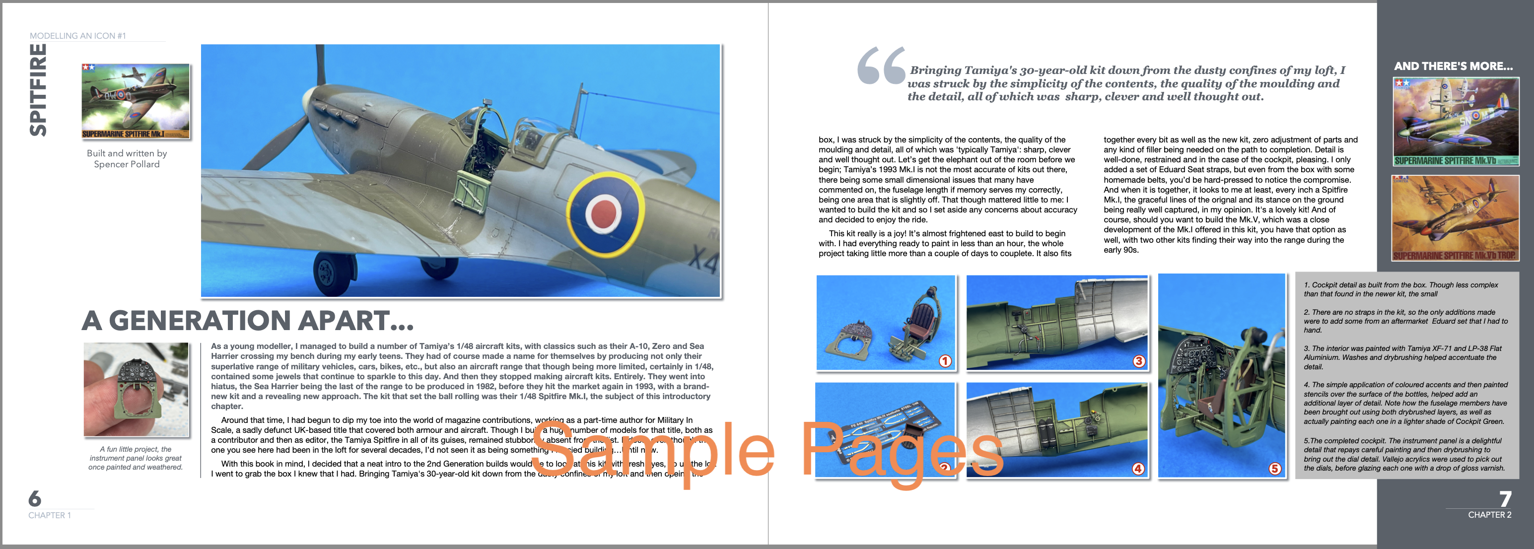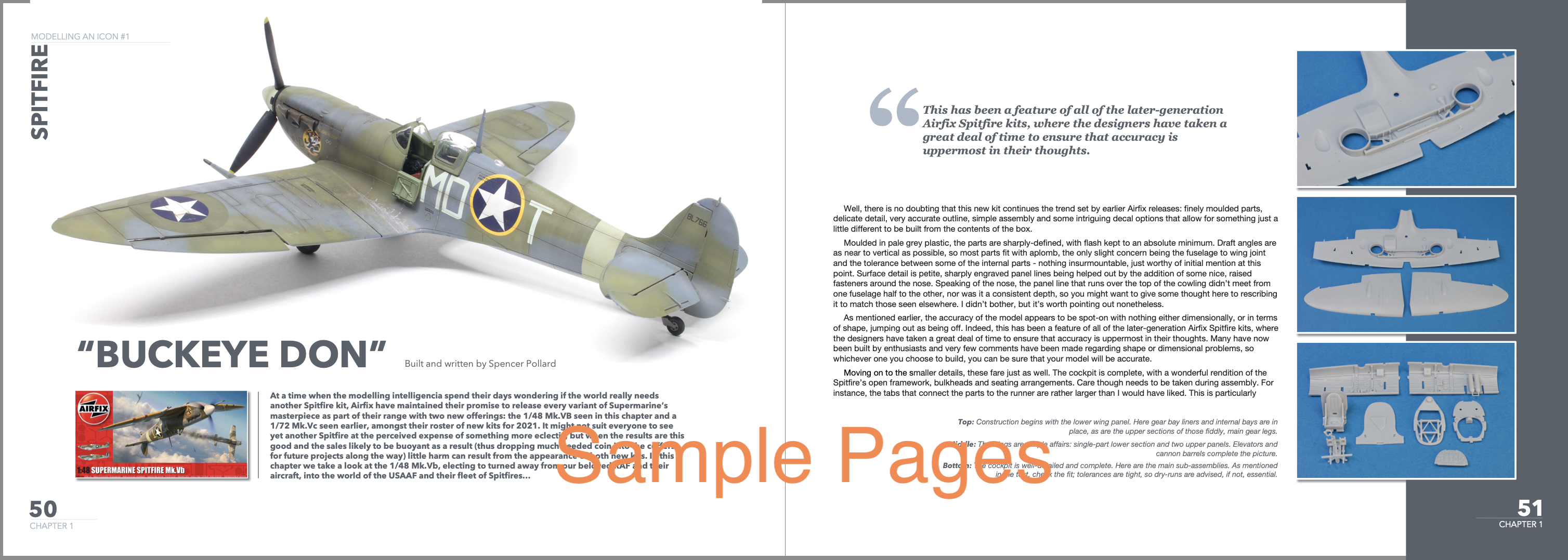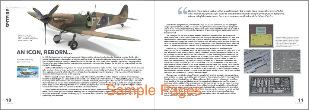 This is the first of a planned series of ‘Modelling An Icon’ publications that will cover famous aircraft from history and though the first three are planned to be WWII subjects (though even that is not set in stone!), the series will also include jet aircraft from the post-war period, with some very famous machines being part of the schedule. Though the list its nowhere near complete, the next year or so will see me deal with the Messerschmitt Me109 Gustav, Focke-Wulf Fw 190A, DH Mosquito, Hawker Hurricane, A-4 Skyhawk, F-4 Phantom and F-18 Hornet – or at least that’s the plan! Each book will be part of this numbered series, so if you are keen to follow along with everything that I do, you’ll not want to miss out on the first of this new collection!