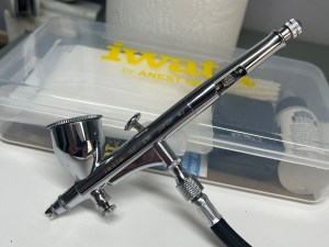 First job was to clean the airbrushes and then give each a small service, not grandiose, just enough to allow me to squirt paint in the general direction of any unsuspecting plastic kit that may feel disinclined to be naked, feeling more comfortable under a coat of paint. It’s a job I loath frankly, but given the importance of these tools day to day, I like to keep on top of their health and wellbeing. Nothing is worse than using a brush to apply light colours only to see it puke some darker bits of dried up paint that have suddenly broken free as new paint and thinners, crosses some old unseen crud.