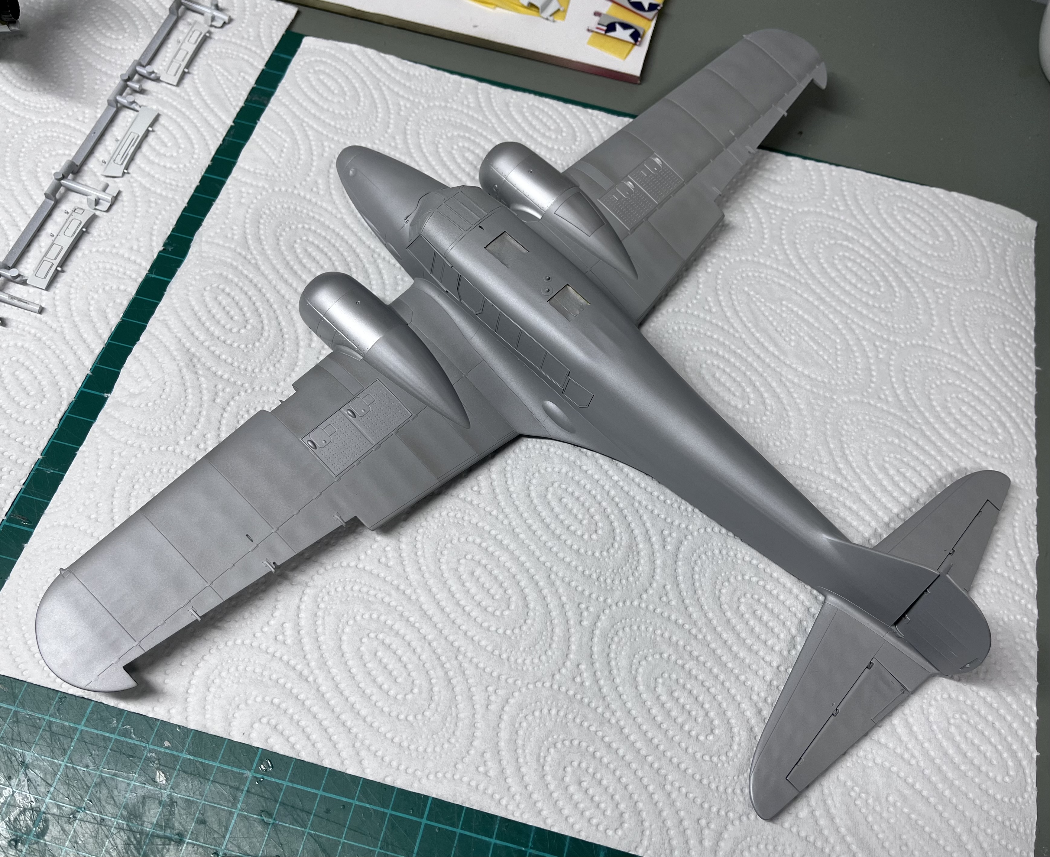 Simply, despite loving the application of decals, I really don’t enjoy doing it over metal/silver/aluminium finishes with multiple tones and patinas. I’m often concerned that gloss coats, decals and then sealing coats, will dull down all of my paintwork taking the model from an interesting finish to one that is rather flatter in appearance. That was certainly the case with the Anson and those RN numerals on the fuselage sides and undersides of the wings., both of which would almost certainly have needed gloss coats and then sealing coats once dry. The Portugese aircraft was a lot plainer with less markings, so that meant I could focus on the finish knowing that there would be minimal gloss work, decalling and sealing coats to disturb what I hoped would be, a reasonably flawless finish.