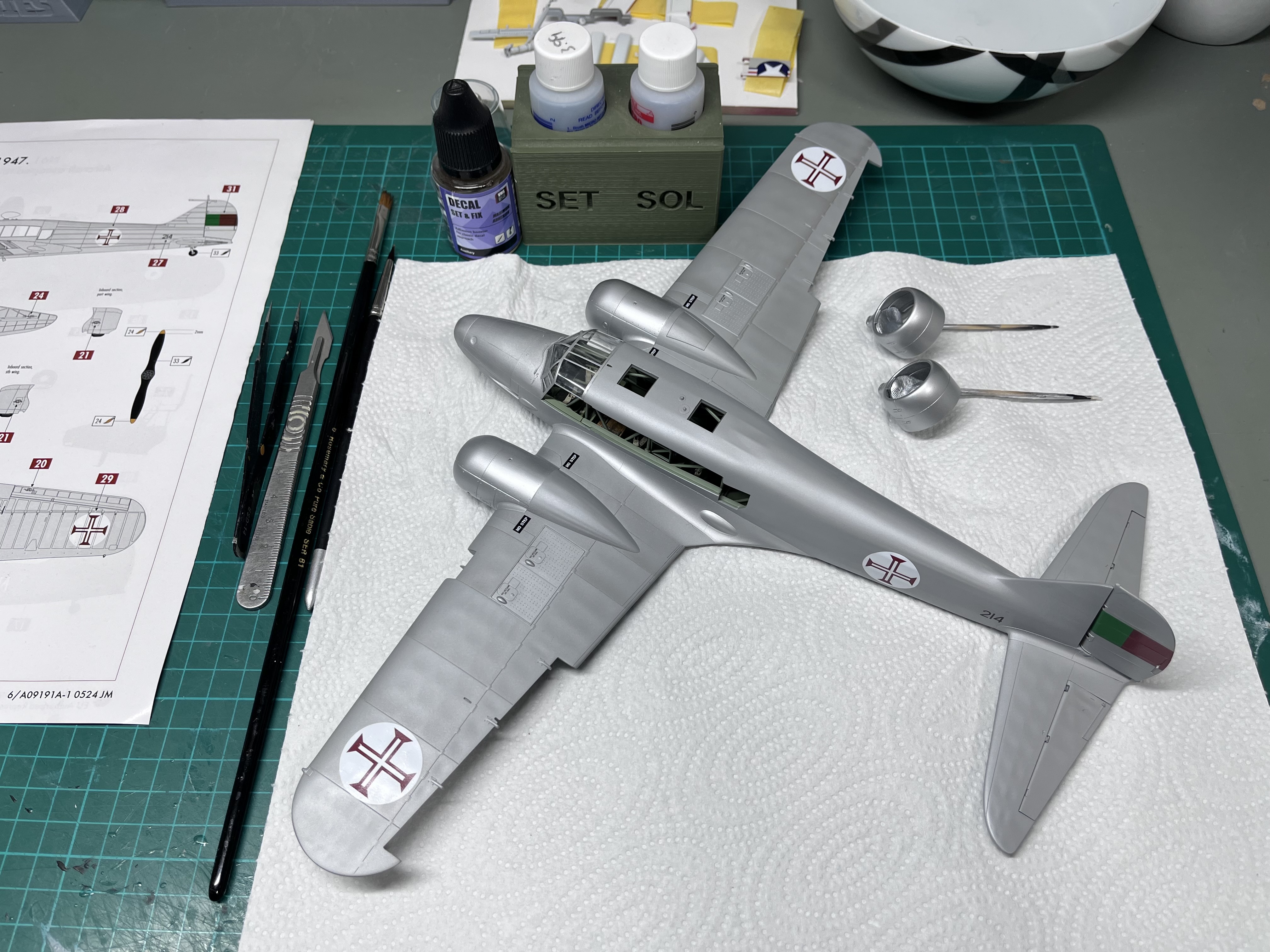Thankfully, today has been a little warmer and my location a little more housebound. There was of course more football (of course there was!) before I had the chance to decal the Anson ready for weathering tomorrow. A far from a difficult or longwinded task, the handful of markings (most of which needed to be applied over plain surfaces) took little more than 30 minutes to apply, which certainly made a change!