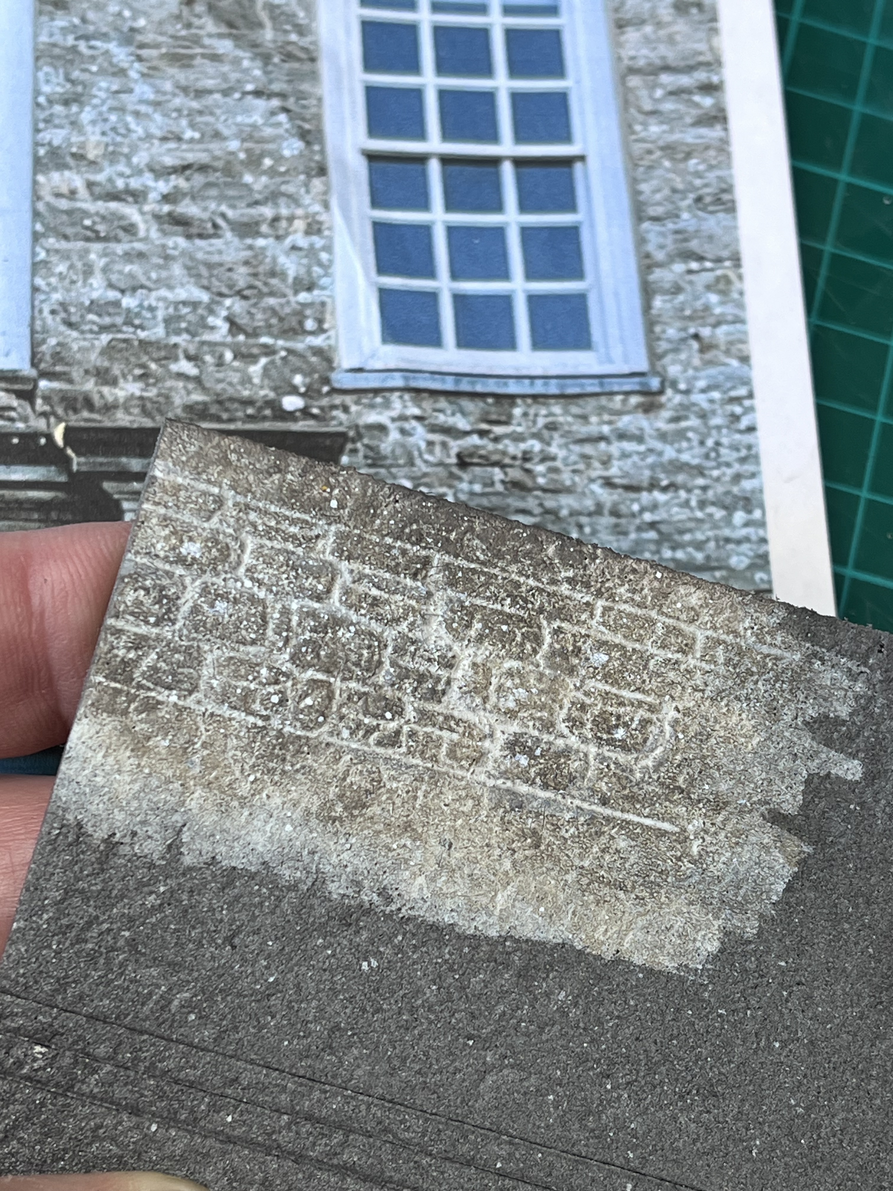 These are very distinctive in the images that I was sent, so I’m keen to replicate them as closely as possible, both in physical texture and colour. It took me a while to work out how to do this, but I’ve now settled on the use of sculpted styrofoam for the walls and then Lifecolor acrylics, brushed and sponged on for the paintwork. The colours are quite muted, but despite that, there are some pretty impressive shifts from a very pale sandstone colour through to almost black where concrete structures mingle in with the older stonework. It will be a challenge to recreate this distinctive look, but one that I’m relishing.