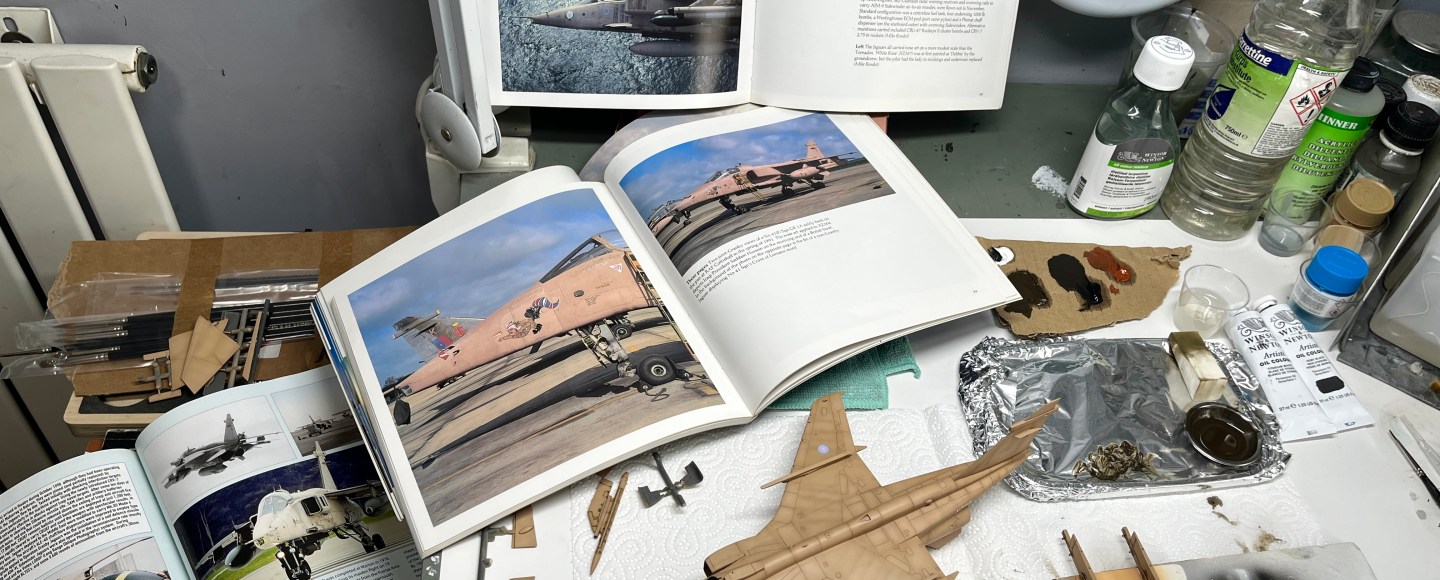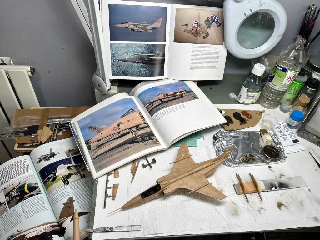 First things first: references. I have plenty of books of Desert Storm and Op Granby, with dozens of images of the aircraft that took part. One thing I noticed as I flicked through the pages of the various books on my shelves was that the Jaguars were nowhere near as filthy as the Buccaneers and Tornados, which, by the end of operations in the Gulf, were absolutely hanging! Instead, they seemed to be rather ‘cleaner’ with less staining, touch-ups and chipping. If the model was to reflect reality, that would have to be recreated in miniature.