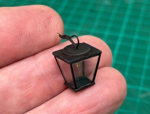 Back home, I was planning to work on the Jaguar as a change of scenery from the commission, but decided instead to focus on the important build and get that done. I’d a few details left to do, including a couple of planters and their trees and then a little lamp that ended to be hung from the upper frame of the door, so that seemed like another good use of time.