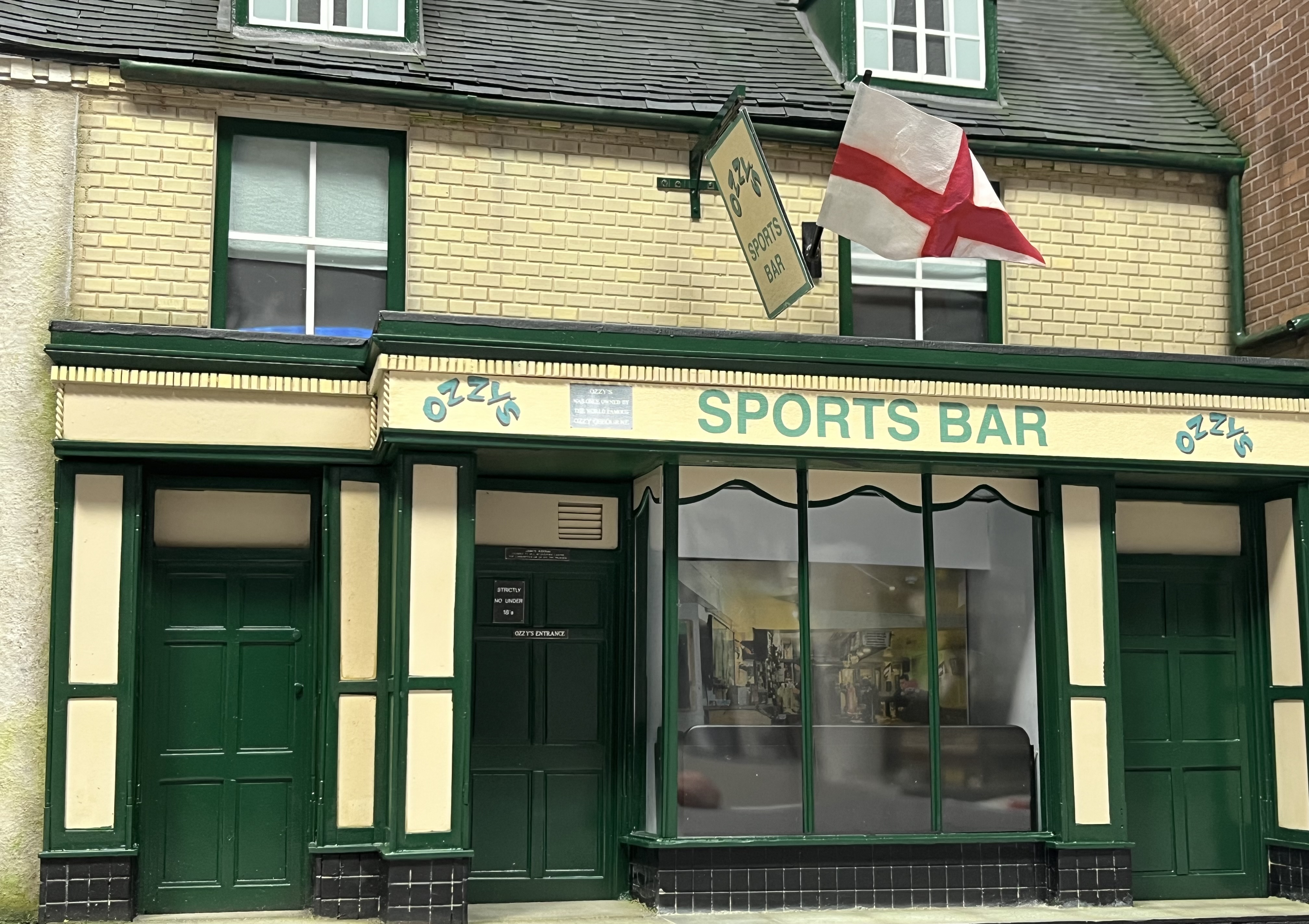With it being so complete, I couldn’t help but take some images of it to see if it looked as realistic as I wanted it to and to compare it to the other buildings that I scratchbuilt a few years back, one of Ozzy’s wine bar and the other, the Kings Head pub.
