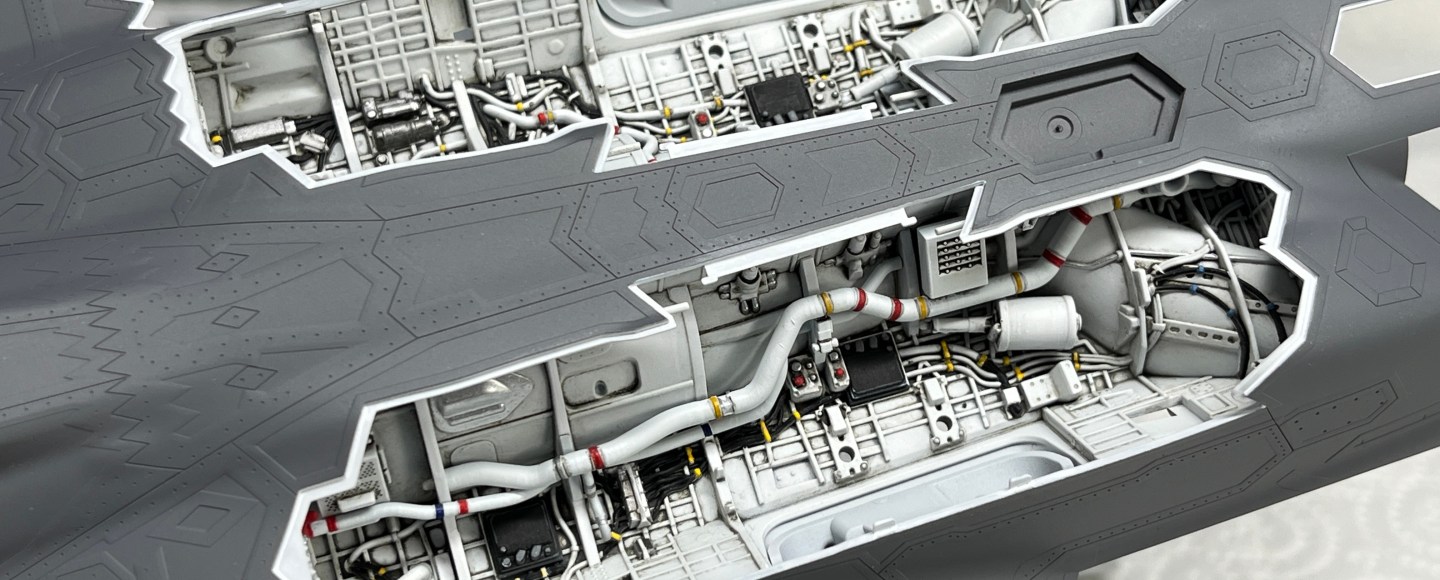 I knew that the detail painting would be a longwinded process and so it proved to be. Having spent an eternity – or so it seemed at the time – painting the weapons and gear bays for my F-35B, I was prepared to spend the same amount of time today, picking out the almost illegal levels of detail that Tamiya had chosen to add inside their model. I was almost lulled into a false sense of security as well. Having already done it once (and frankly decided at that point to never do it again…) I figured I would know some corner-cuts and be able to paint it a little quicker this time around. Yeah, that didn’t work. In fact, I’m sure it took me longer as my desire to create a better bay this time around, hit the perfectionist button inside my head and I started to faff with it, despite knowing that the results I’d achieved thus far, were more than adequate.