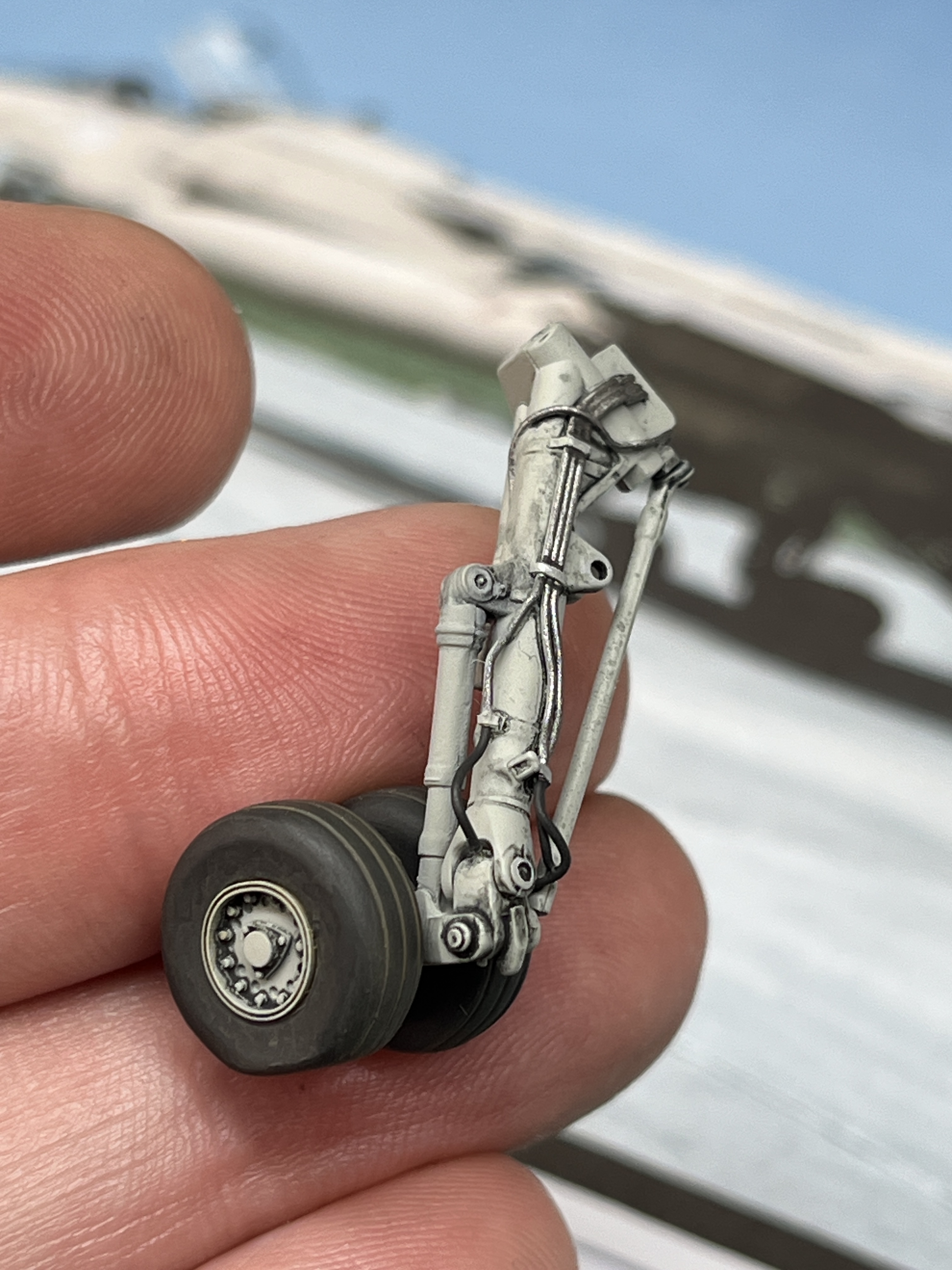 Landing gear legs and wheel/tires, a bane to modelers. Shading, shadows, the correct flatness of the tires on concrete. Are all the tire/wheels at the correct angle, what a headache. When there are those stainless steel bands for the hydraulics how to keep the correct sheen. Sometimes there’s more work involved on those than the cockpit, but when they’re finally done, WOW. If they’re slightly off the opposite, dud. The old grass, dirt, sand and gravel of WW2 made life a little easier, the simplicity of those times helped too.