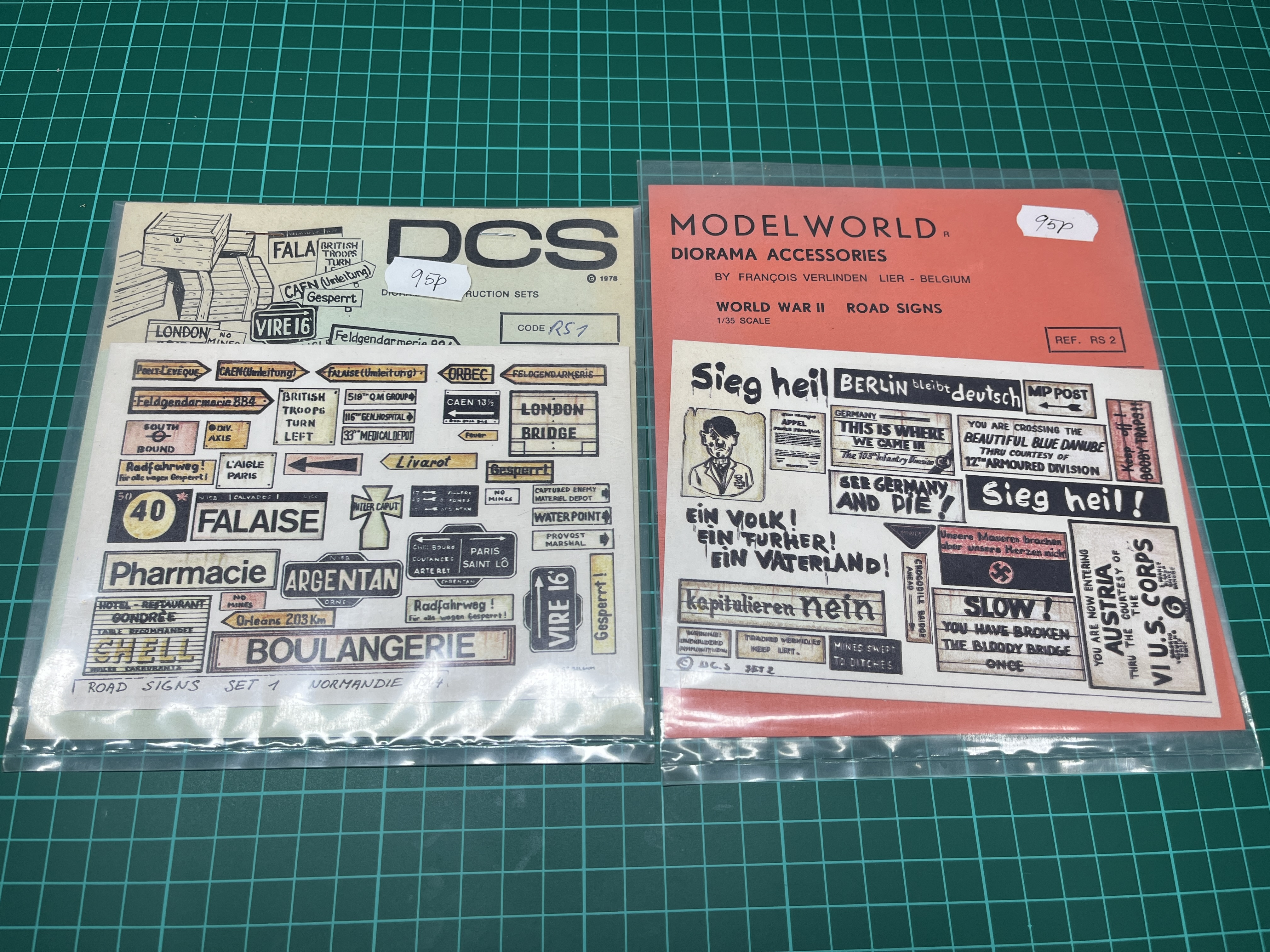 It was whilst waiting that I spied a pile of bits and pieces, decals mainly, that looked to be interesting. I’m a sucker for Modeldecals, so couldn’t resist thumbing through those, but moved on, feeling that I had enough the things and those I already owned, I hadn’t used. It was at that point I noticed a couple of Verlinden road sign sets. These were not from the VP range. One was DCS, the other from his very early Modelworld collection, a range I’d heard of, but never seen. I had to have them.