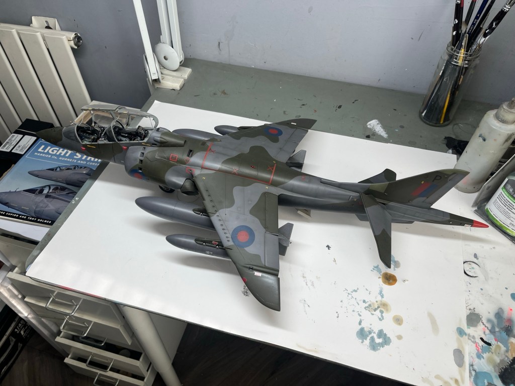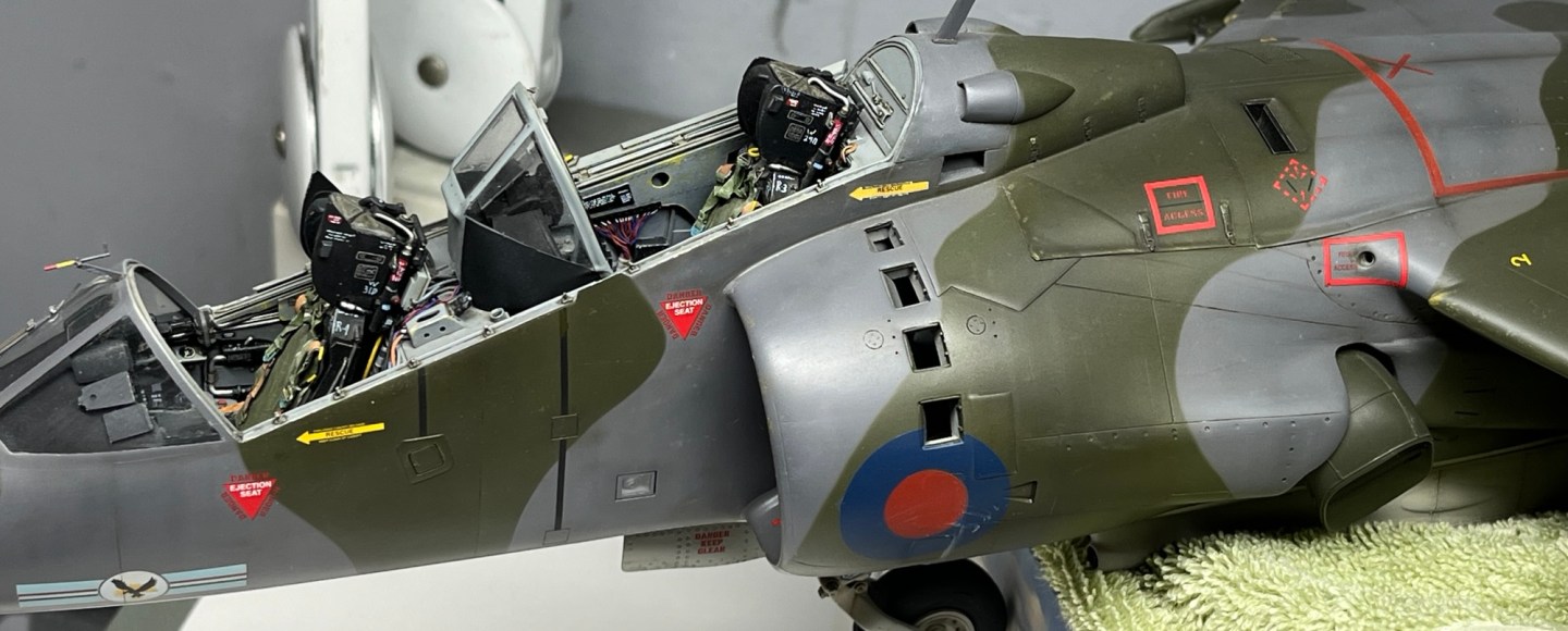 Spence that’s such a good model and the two seater is a great subject it just has to saved. I did spend a week at RAF Wildenrath on a CCF summer camp in 1976 with the RAF Harrier force in Germany including sitting in on mission briefings with the crews; incredible experience. I’ll never have the skill/patience to tackle an Airfix 1/24 Harrier never mind convert it but I do have a 1/48 Kinetic Harrier T2 in the stash and your book on me shelf… that’s it I’m inspired to “model an icon”! 😉