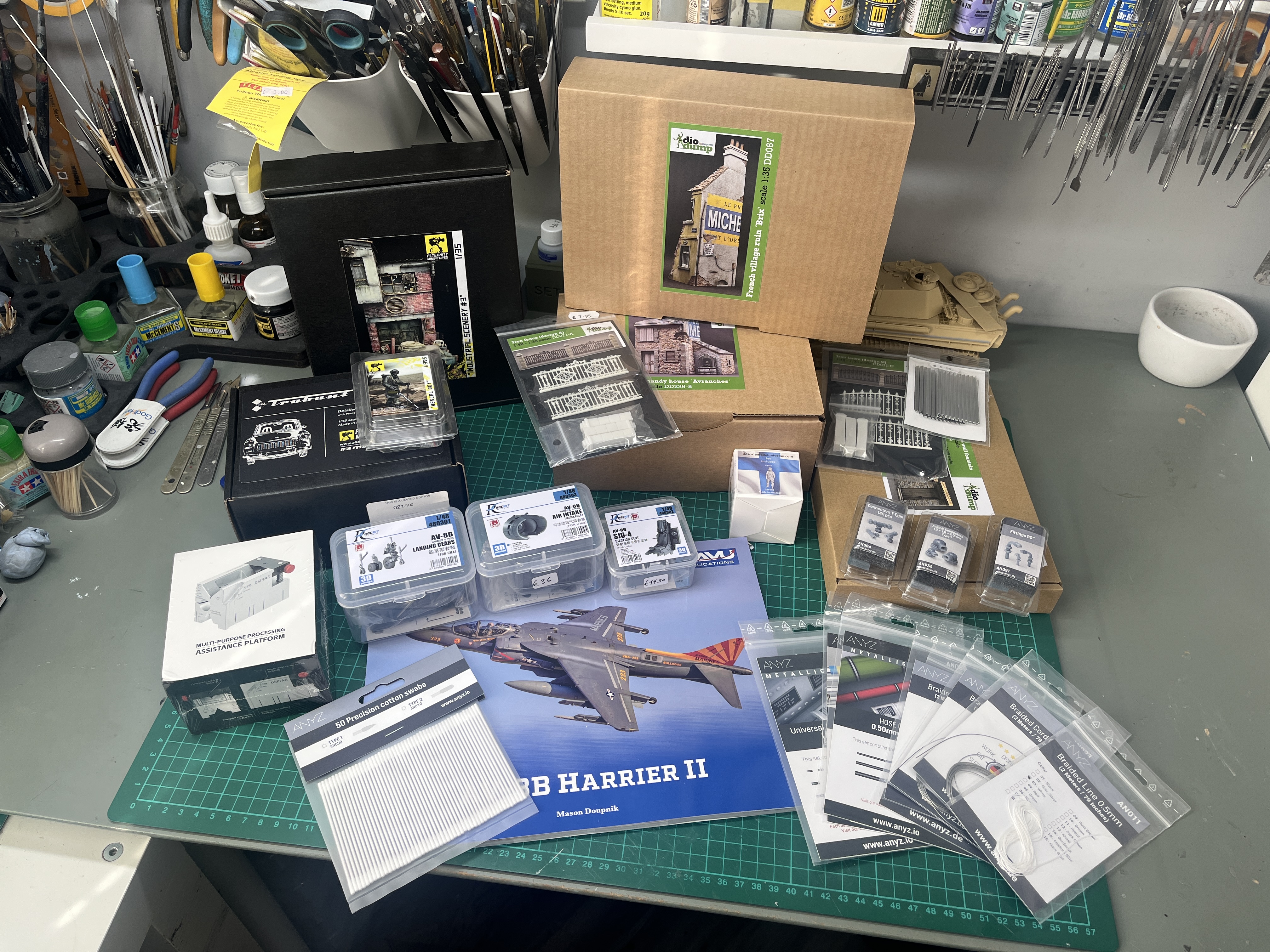 This morning I decided at last to take a look at some of the purchases that I made at the show and formulate a kind of loose plan of action for their use over the coming year. I managed to resist the temptation to buy anything that would not directly be used either as part of other projects or in the case of the diorama accessories, the basis of standalone miniatures. This kept the costs down and the focus as tight as possible. With so many kits for work coming my way each year, making decisions regarding my own builds as infrequent as they are, needs to be done carefully if impulse buys are not to simply end up as unfulfilled ideas, rather than models I can actually display.