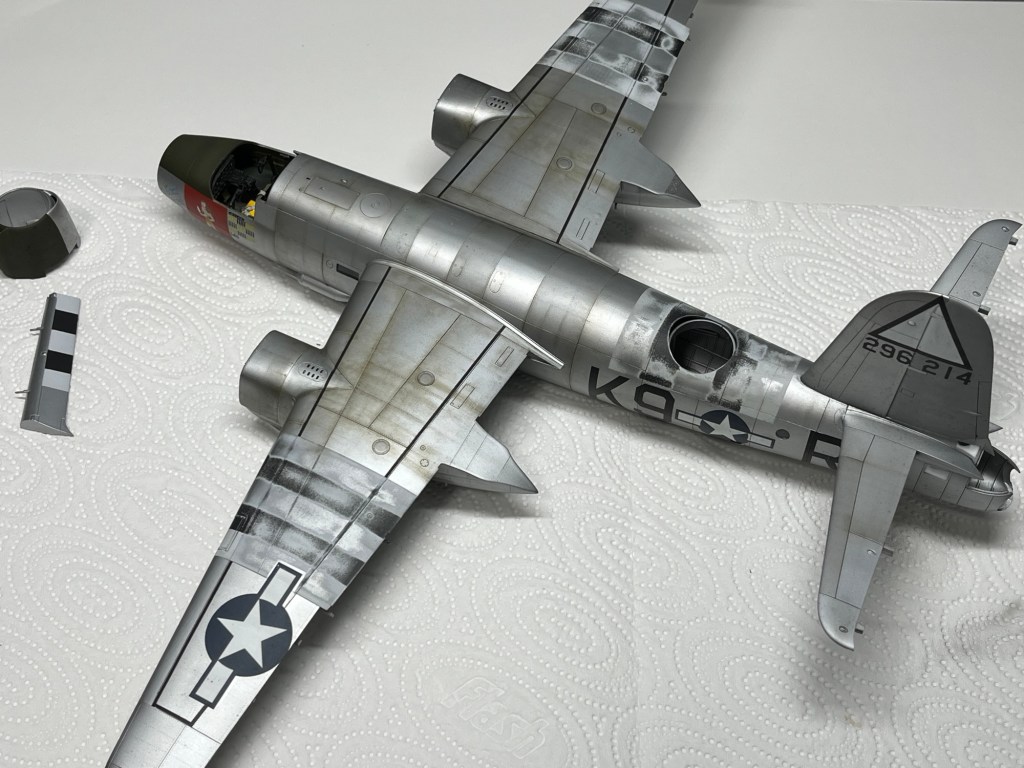 As it stands, the airframe is all-but complete and the paintwork, virtually finished. It certainly looks weathered so that’s pleasing, and though the markings as mentioned a few days ago are not the brightest, the model looks attractive. I’m happy enough with it to show it off at the weekend which cannot be said for the Monogram build that I botched so comprehensively last year!