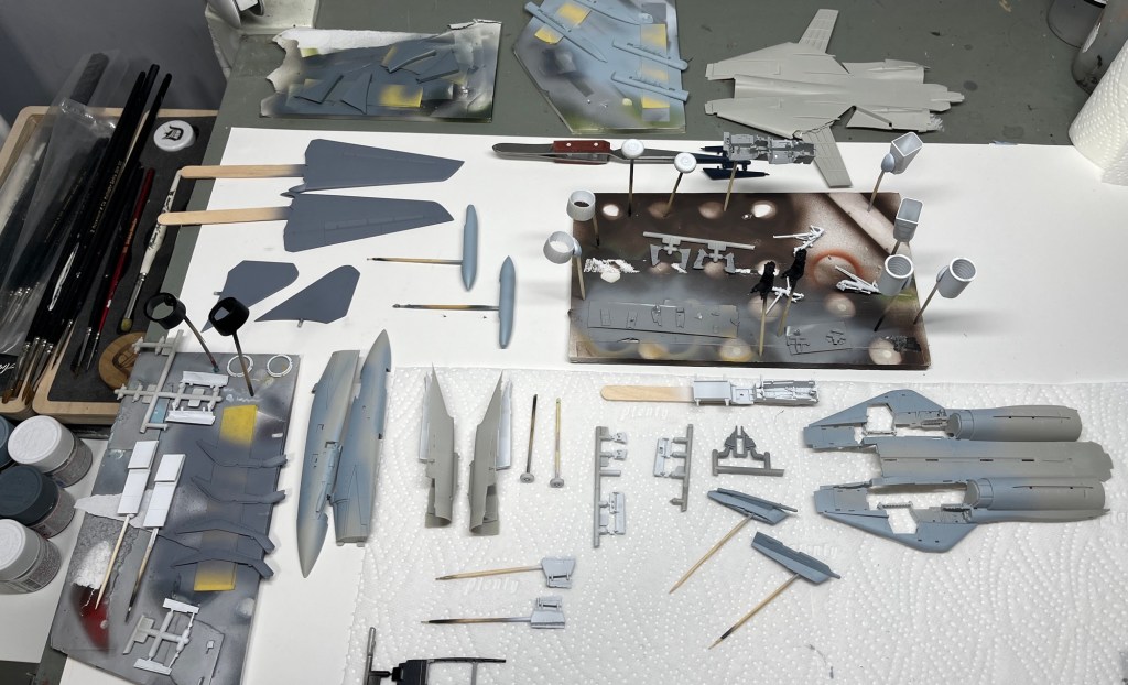 With Storm Goretti moving closer and closer throughout the day, I’ve spent much of it hunkered down, painting everything that I’d assembled yesterday. None of this was particularly involved or difficult, involving little more than simple basecoats, but it was good to get it all sorted so that masking and detail painting can be started if not completed, over the next few days.