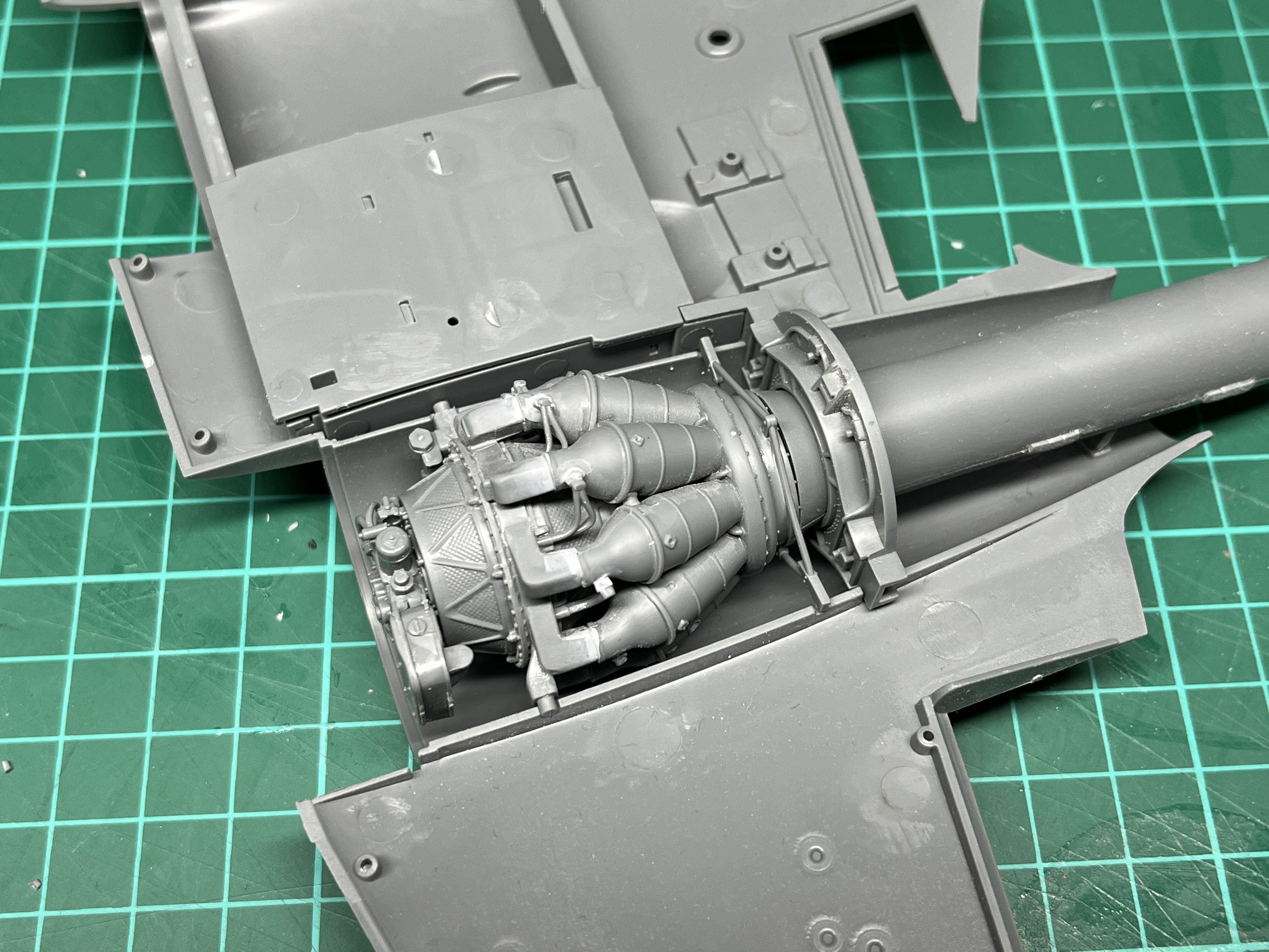 Once I’ve taken my granddaughter to school in the morning I photograph everything built so far and then fling some paint over these smaller parts. I’m particularly looking forward to the ASK seat that I revealed last week, as am I the engine that I completed this morning. With both being essentially one piece, they will be tricky to paint, but all being well, with a steady hand, some carefully airbrushed baselayers and finely painted a acrylic details, everything should come together. Well, that’s the plan…