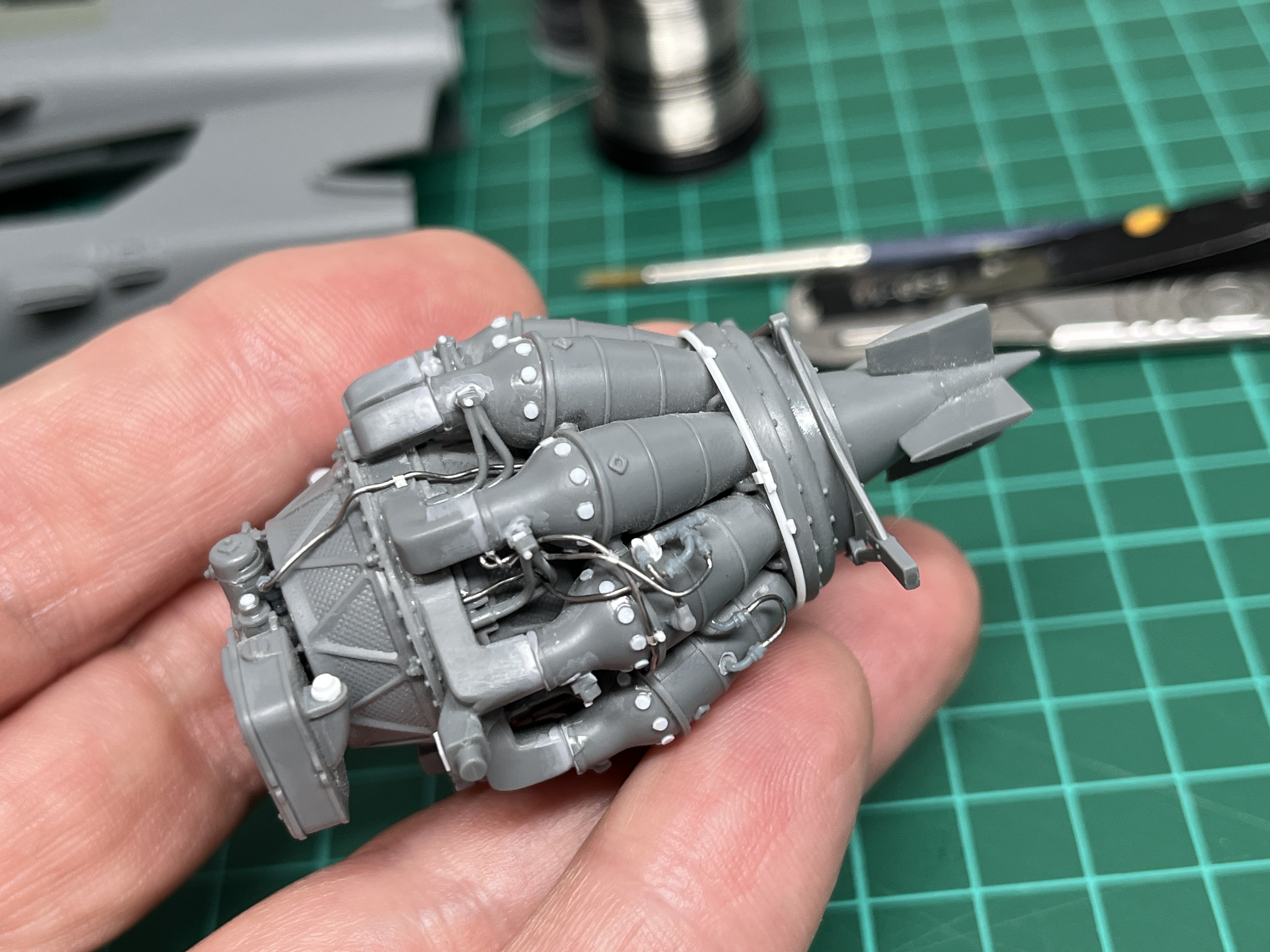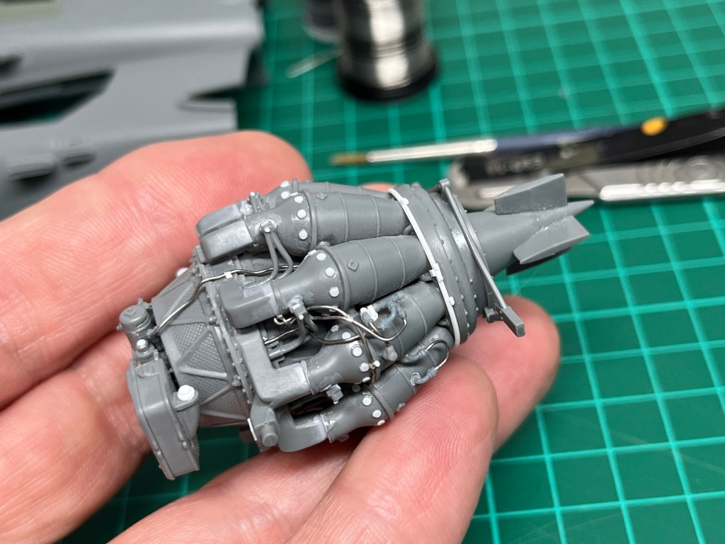Today has been a day during which I planned to finish all of the Meteor’s construction and then add any remaining details that I felt needed to be in place. This involved the completion of the engine and then the undercarriage, all of which could be tweaked with some simple additions that would ‘improve the image’ somewhat, as that most knowledgeable of modelling authors, Ray Rimmell may have written back in the day.